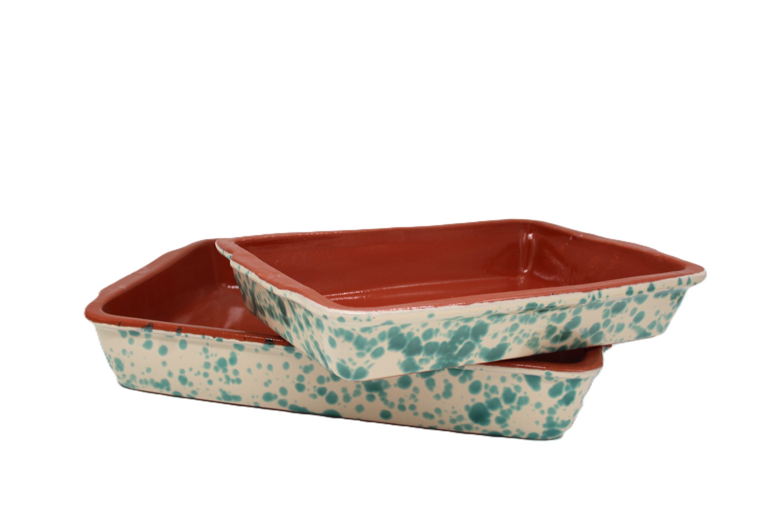 - Ovenschaal van keramiek met groene spetters